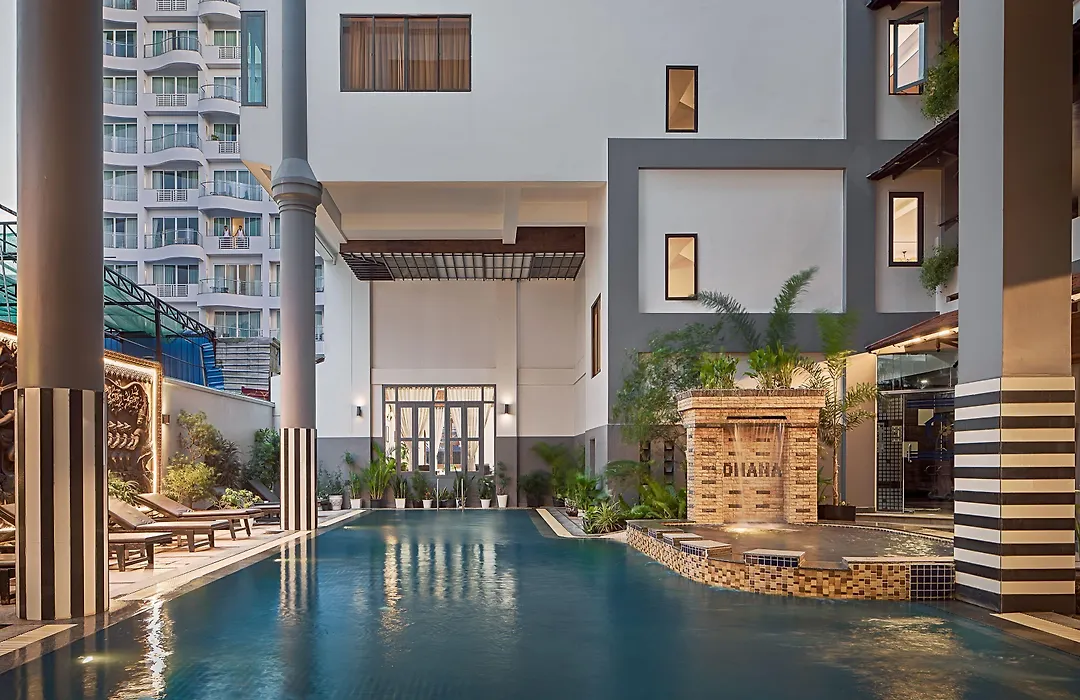 Situé à côté de nombreux restaurants et des bars, et à 16 minutes à pied de Sorya, Ohana Phnom Penh Palace Hotel comprend un restaurant. Proposant un bain chaud, des installations de massage et des jacuzzis sur place et 3 piscines extérieures, l'hotel bénéficie d'un cadre à quelques instants du Musée national du Cambodge.